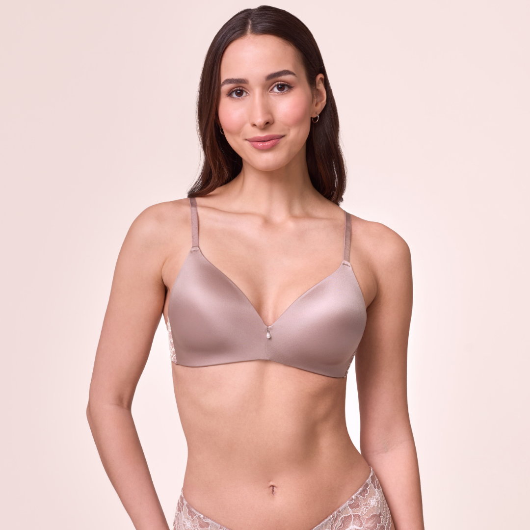 Smooth, seamless, wireless plunge molded t-shirt bra. This is a body hugging bra made with ultra-soft microfiber and soft molded foam cups. Great for lower neckline outfits and tank top styles. The soft power mesh side wings support around the band and the cups offer a fantastic smooth shape for every day wear.
