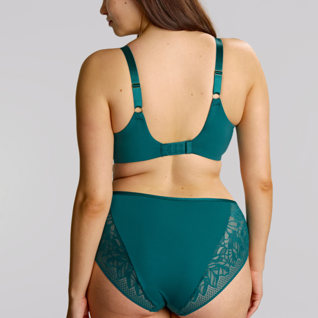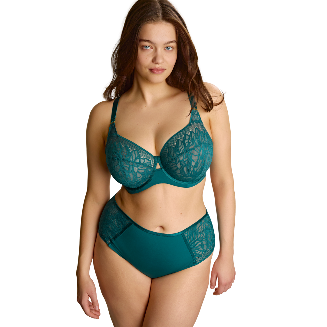 Meet Sophia, the full cup bra that refuses to choose between comfort and wow-factor. Featuring a signature Infinity Lace—a mesmerizing blend of dramatic florals and geometric diamonds—this style celebrates your curves with confidence. The innovative lace flexes to fit your unique shape, while soft smoothing wings deliver a seamless silhouette under any outfit. Wires engineered for both support and comfort keep you feeling fabulous from sunrise to bedtime. Sophia's crafted from recycled materials, so you can feel as good about wearing her as you do in her. Conscious, chic, and unapologetically you.